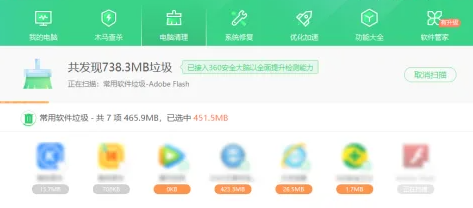 1.打開360安全衛士后,點擊上方導航欄上的【電腦清理】按鈕。