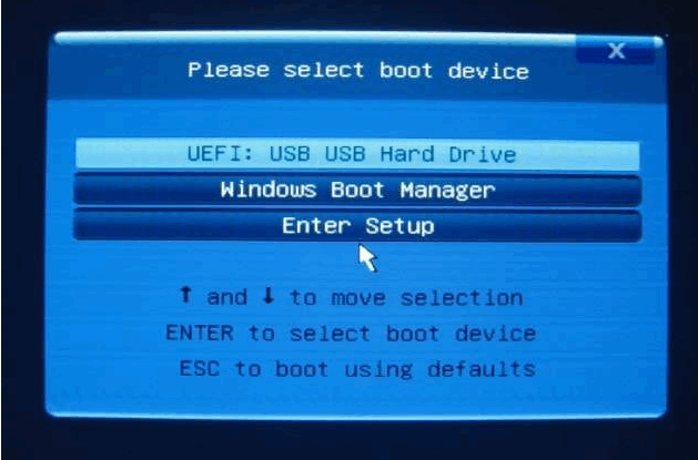 4.重啟電腦時并且插上U盤,開機時快速按 F12,在引導菜單界面中選擇 U 盤,進入pe系統繼續安裝。