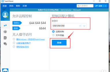 3、然后在右側【控制遠程計算機】下的填寫被遠程操控電腦的ID,就是第一臺電腦我們記錄下來的ID號。填寫好后點擊【鏈接】按鈕。