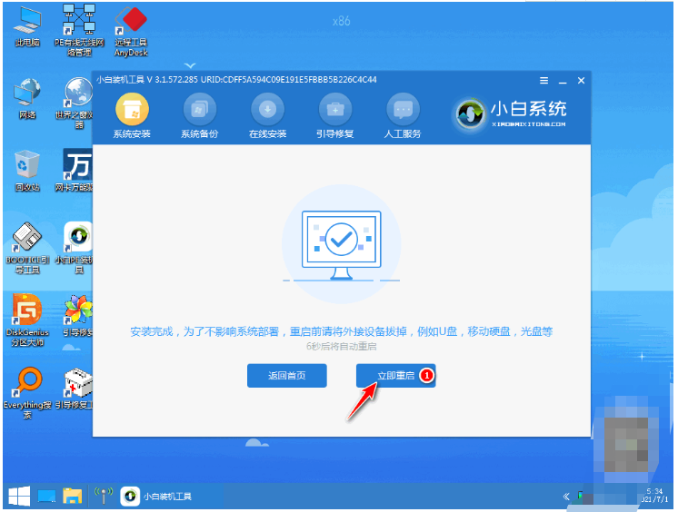 6、系統安裝完成之后,再次點擊立即重啟電腦。