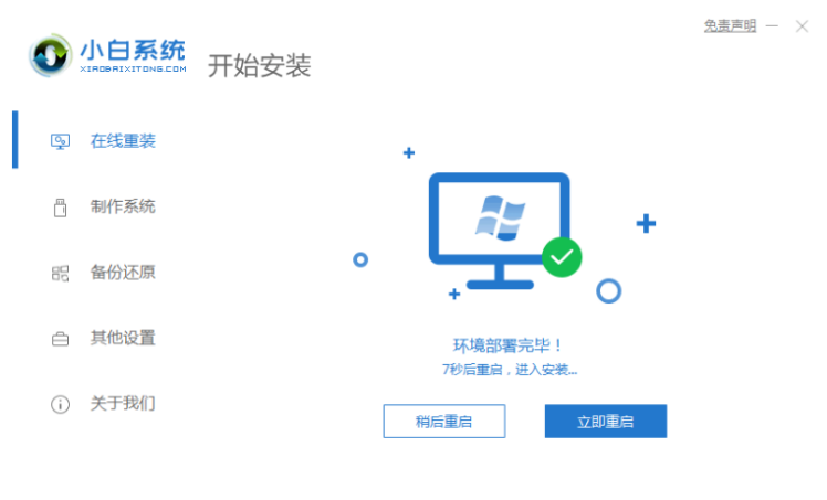 3、環境部署完畢之后,點擊立即重啟電腦。