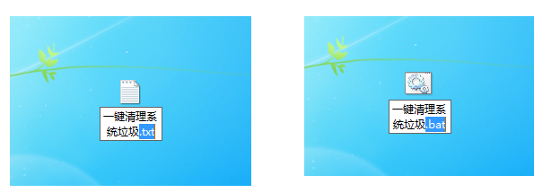 2.然后把TXT文本文檔的后綴名.txt 改成 .bat,雙擊鼠標左鍵運行,等2--3分鐘后提示一鍵清理系統垃圾完成即可關閉窗口。