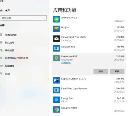 2.如果你想挪動某個軟件,點擊它,就會出現【移動】和【卸載】的按鈕。