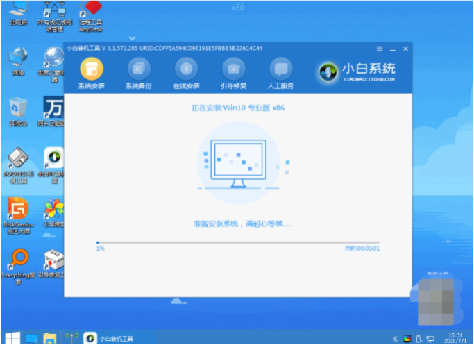 5、電腦進入pe系統后,小白裝機工具將會開始安裝win10專業版系統,大家耐心等待即可。
