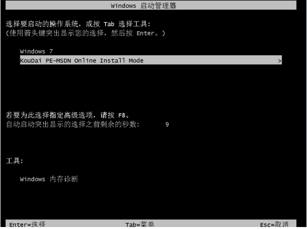 6、重啟電腦后,進入啟動管理器界面,選擇第二個選項,按回車鍵進入。