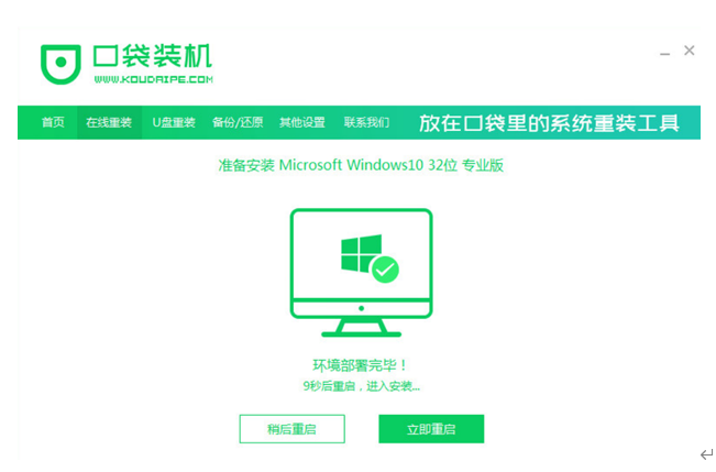 5、環境部署完畢之后,點擊立即重啟電腦。