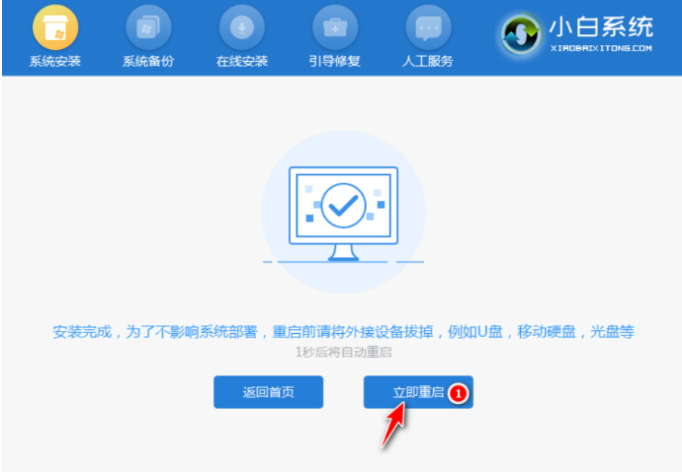 7、等待系統安裝完成之后,拔掉u盤,點擊立即重啟電腦即可。