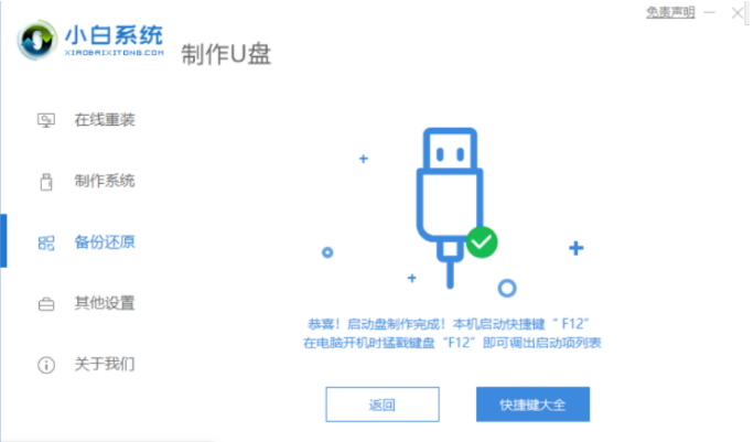 3、等待制作完成之后,可以打開查看需要安裝的電腦的啟動快捷鍵,再拔掉u盤。