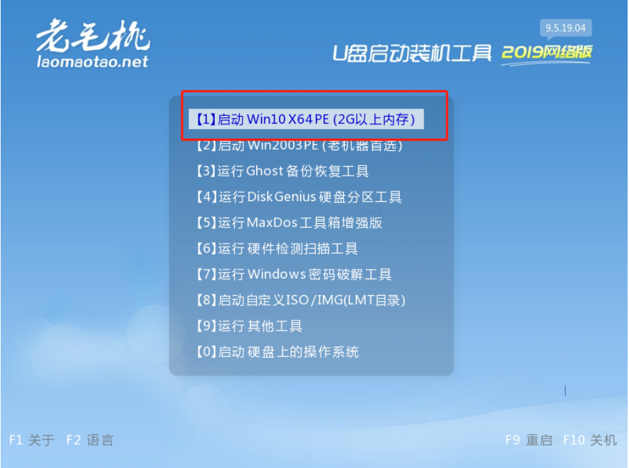 3、 通過以上任意方法進入u盤之后,就會看見老毛桃對應的主菜單,我們選擇[1]進入老毛桃u盤winpe系統桌面,準備重裝系統