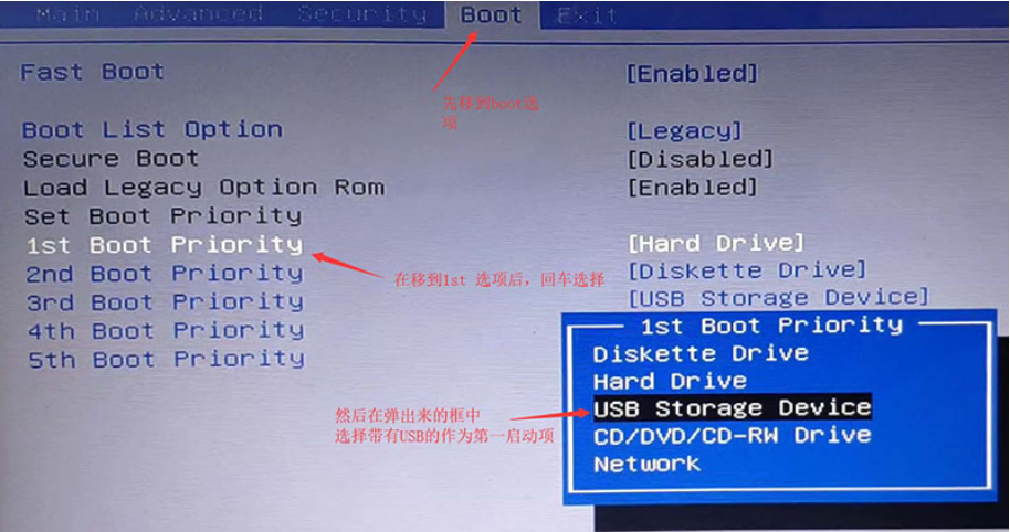 1、 將老毛桃u盤啟動盤插入后,我們可以通過bios快捷鍵進入設置頁面,將u盤設置為第一啟動項,重啟電腦即可從u盤啟動