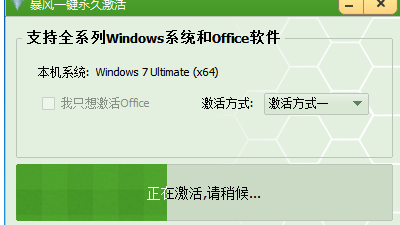 3.暴風激活工具此時將會自動開始激活win7旗艦版操作系統,我們可以在軟件頁面的下方看到激活進度。