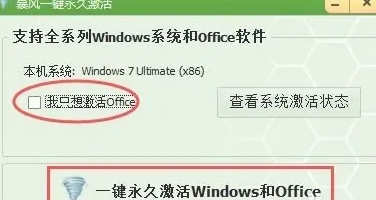 2.雙擊打開后就會看到如下界面,如果你只想激活office軟件,那直接勾選對應選項即可。如果想同時激活windows和office軟件,那就直接點擊以下框框中的選項即可。這個根據自己的需求選擇就行了,然后在使用的時候我們還需要把殺毒軟件關閉。