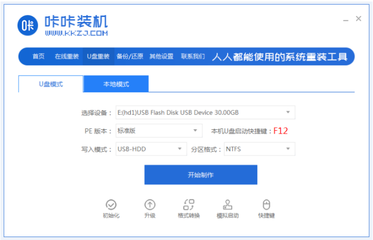 使用咔咔裝機一鍵重裝系統工具重裝系統: