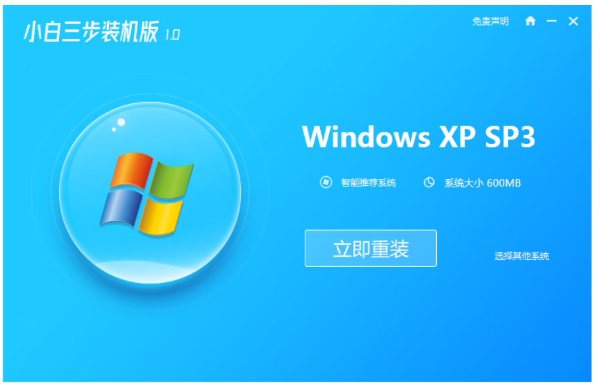 1、搜索“小白三步裝機版”工具下載,再打開后選擇需要安裝的xp原版系統,點立即重裝。