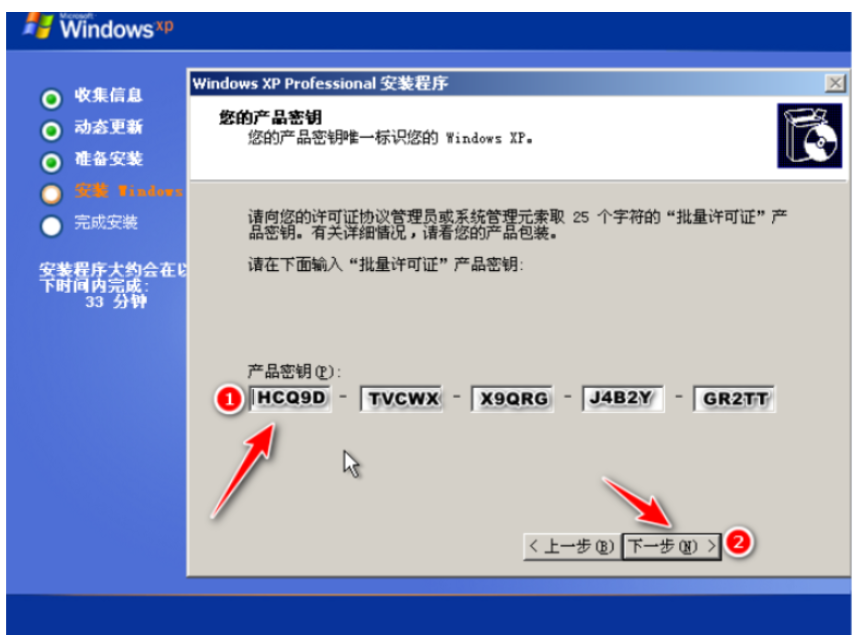 8、重啟電腦后,進入密鑰頁面輸入圖中所示密鑰。