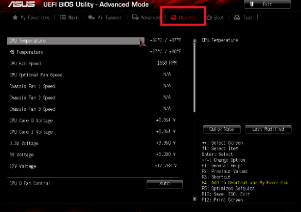 方法4:可使用bios內的Monitor選項調整風扇轉速