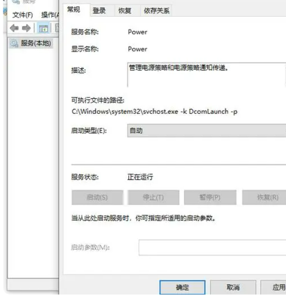 2、選中右邊的Power雙擊打開,確保已啟動,把啟動類型設置為自動,點擊確定。