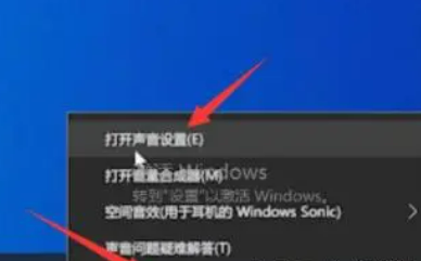 2、若沒有,可以右鍵單擊單擊喇叭,選擇打開聲音設置,選擇聲音控制面板。