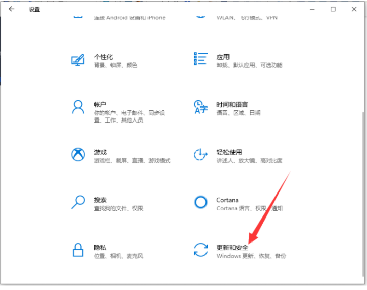 2、在設置窗口界面中點擊更新和安全。