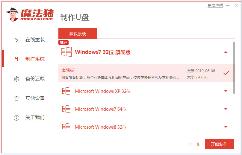 1、第一步打開一臺可聯網的計算機,在瀏覽器中搜索魔法豬重裝系統軟件,將其下載到桌面當中,此時接入一個8g內存以上的空白u盤在電腦上,打開重裝系統工具的主頁面,選擇u盤重裝系統這個功能,點擊開始制作。