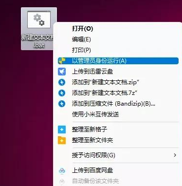 4.右鍵點擊【.bat】文檔,然后選擇【以管理員方式運行】。