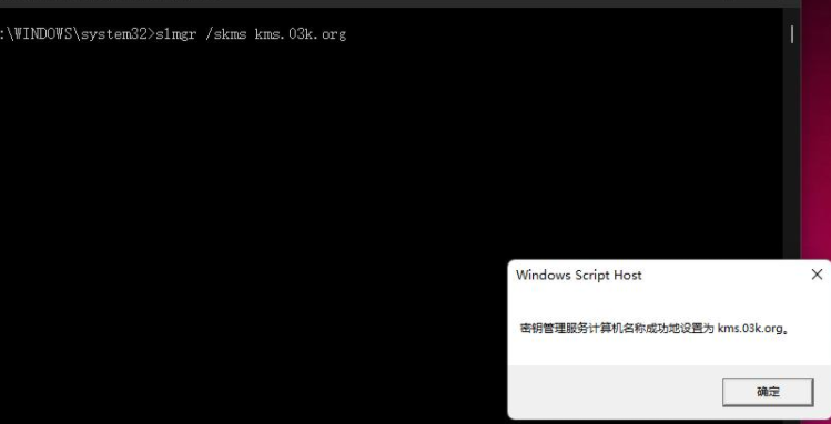 2.輸入【slmgr /skms kms.laihaodong.cn】。