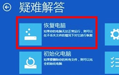 2、點擊恢復電腦或者初始化電腦修復。