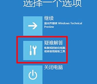 1、按住Shift鍵并將電腦重啟,然后找到選項頁面,點擊疑難解答。