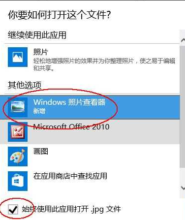 7.雙擊圖片,則彈出打開方式選擇界面,選擇“Windows照片查看程序”,并勾選下面的“始終使用此應用打開.jpg文件”,再“確定”即可。