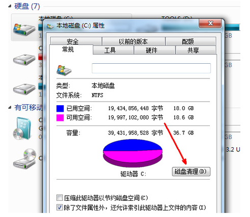 7、如果電腦的磁盤空間還是太小,可以在屬性頁中選中壓縮驅動器來節約磁盤空間,通過這種途徑可以一定程度上節約空間。