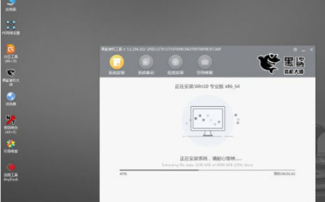 7、進入黑鯊PE系統會自動彈出黑鯊裝機工具并且開始自動安裝系統文件。