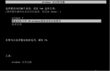 6、文件下載成功后重啟電腦。在windows啟動管理器界面中點擊進入“黑鯊裝機大師PE模式”。