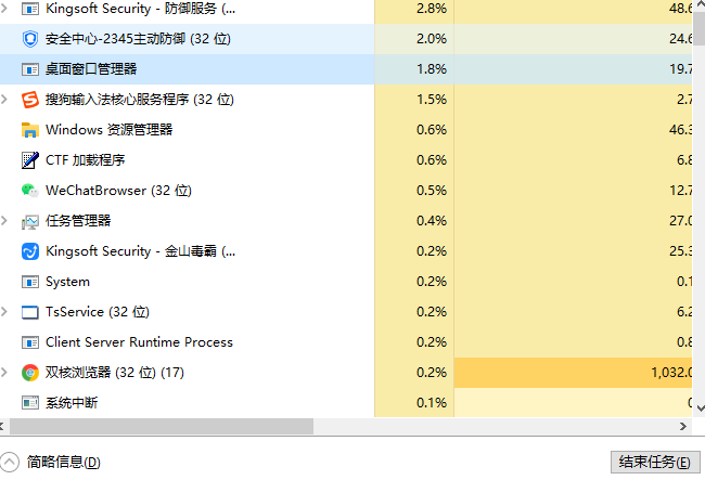 3、查看”狀態欄:,一般正常情況下顯示狀態是“正在運行”,而死機的時候一般會顯示“未響應”,出現“未響應”的程序將其關掉即可,先將任務窗口中選擇“未響應”的程序名字,然后我們點擊“結束任務”按鈕就OK了。
