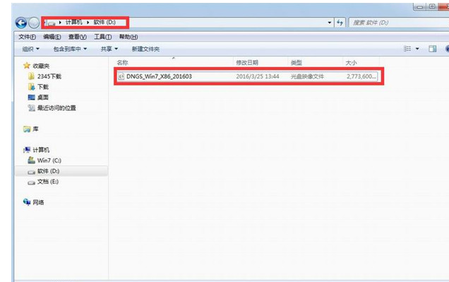 1.首先我們把下載Ghost Win7系統鏡像"DNGS_Win7_X86_201603.iso"到本地硬盤上,大家根據自身情況來選擇放到哪一個盤。