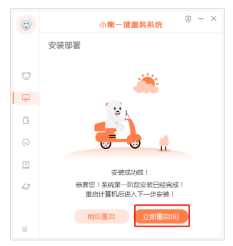 7.等待自動部署安裝環境完成后,點擊“立即重啟”電腦。