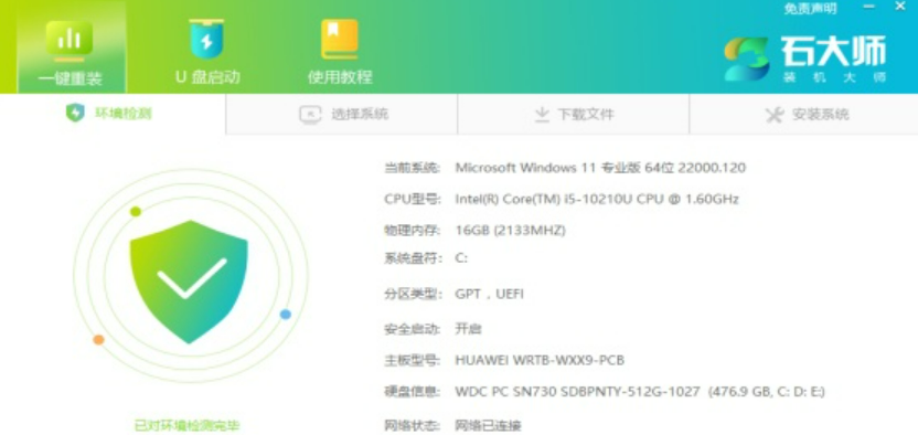 2、 石大師一鍵重裝系統