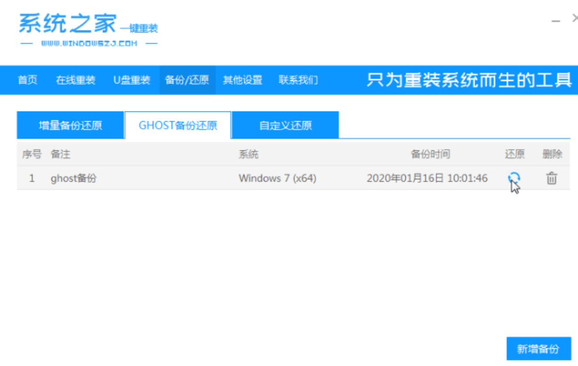 2、選擇“ghost備份和還原”,單擊[還原]按鈕。