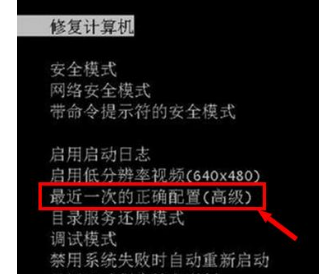 5.如果不是usb排線的問題,那我們再次選擇關機重啟電腦,出現請選擇要啟動的操作系統時,選擇F8鍵,然后進入高級啟動中,再選擇最后一次正確的配置。