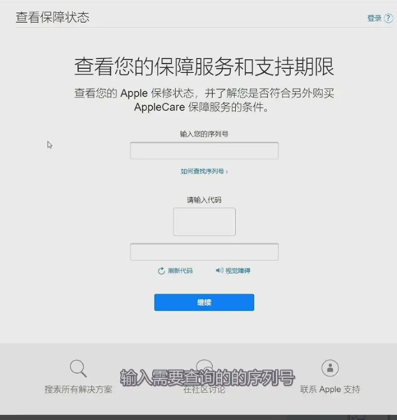 1、點擊進入蘋果官網,點擊放大鏡圖標,輸入序列號。