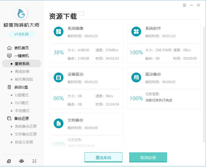 4、極客狗此時將會開始自動下載win7系統文件,全程無需我們手動操作。