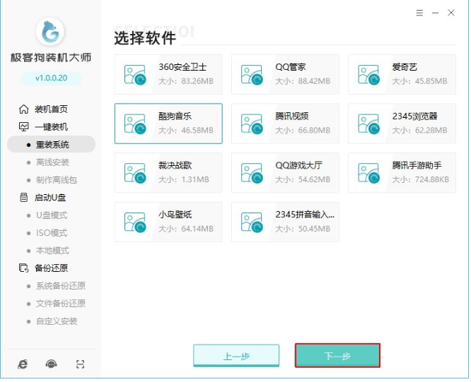 軟件版本:極客狗裝機大師v1.0.0.20