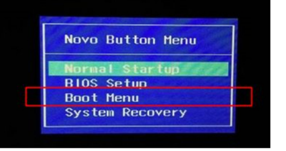 2、此時開機并調出novo button menu,按鍵盤的方向鍵選擇Boot Menu,按回車鍵;