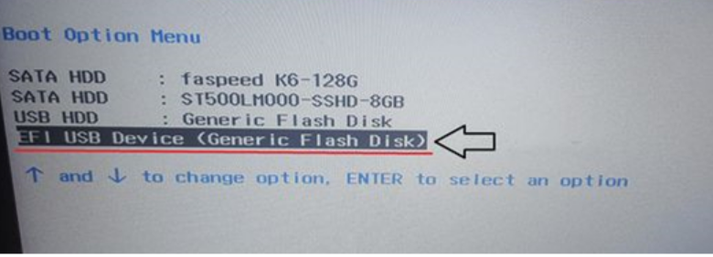 2、隨后調出啟動管理菜單,根據需要選擇U盤啟動項,然后按回車進入U盤啟動即可。