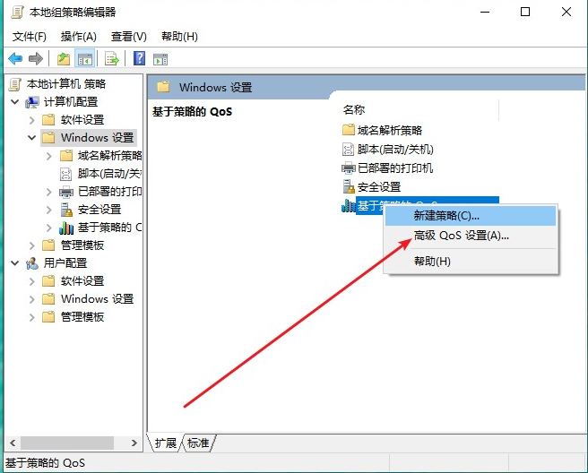 3、右擊“基于策略的Qos”,選擇“高級Qos設置”進入。