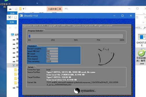 14、重啟過程拔出U盤,之后進入到這個界面,執行win10系統組件安裝、驅動安裝以及激活操作。