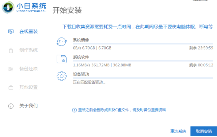 2.小白系統自動下載我們需要的系統文件,耐心等待。