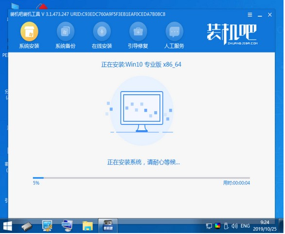 8、在出現安裝系統界面,我們耐心的等待一下即可將安裝系統完成。