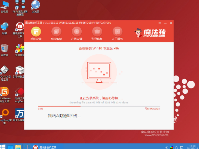 2、進入pe系統,耐心等待系統進鏡像的安裝;