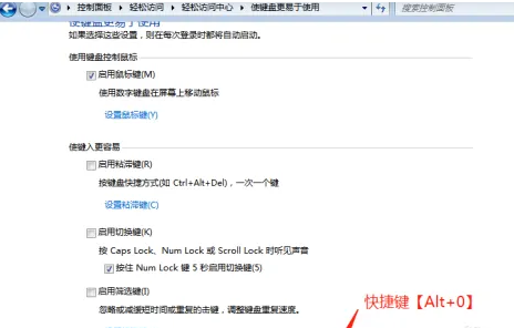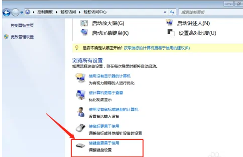 3、按4個箭頭方向鍵”↓“向下移動至【使鍵盤更易于使用】--【回車】。