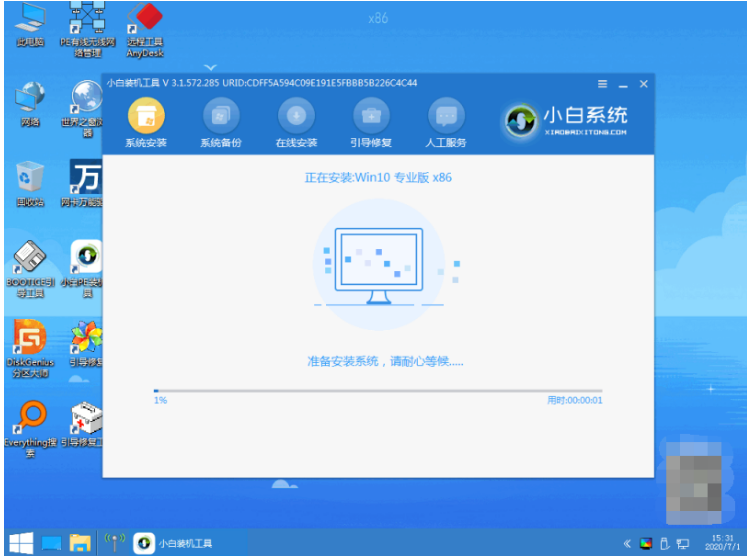 5、電腦此時在pe系統內,點擊打開小白裝機工具安裝系統,這里我們就可以把固態硬盤當做系統盤,將系統安裝到電腦固態硬盤上即可。